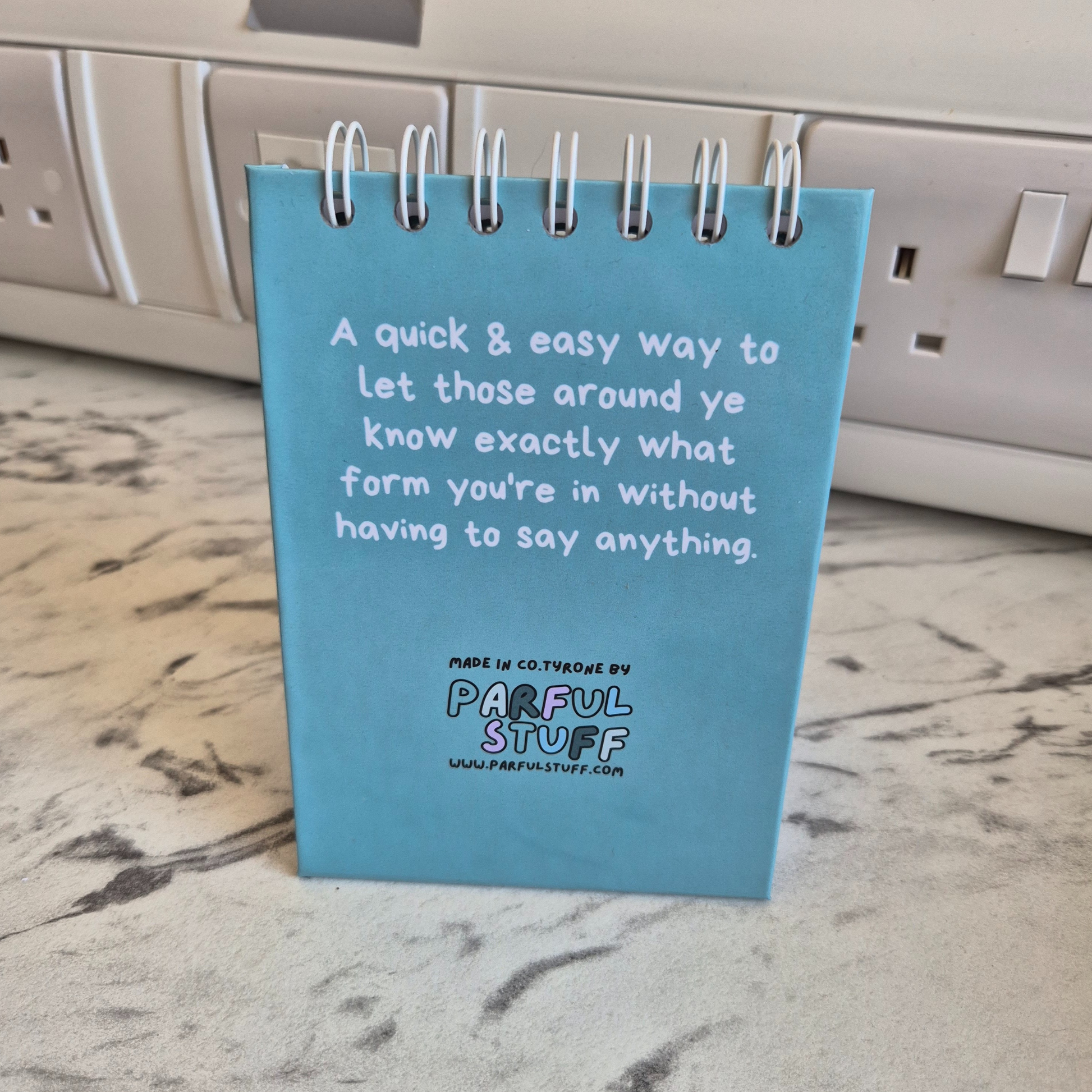 With 40 colorful pages and witty phrases, let your team/colleagues know your mood while adding a bit of craic to the office.