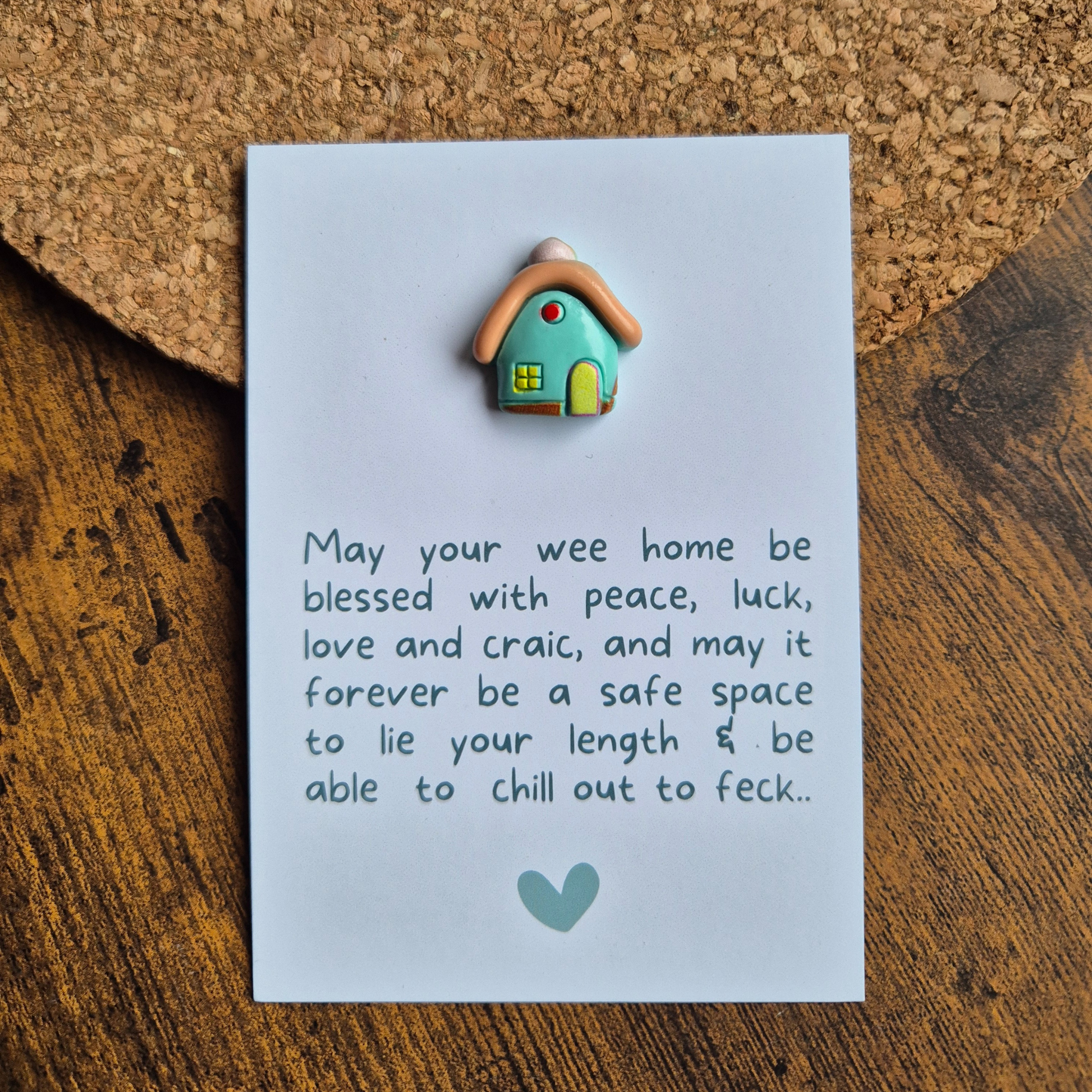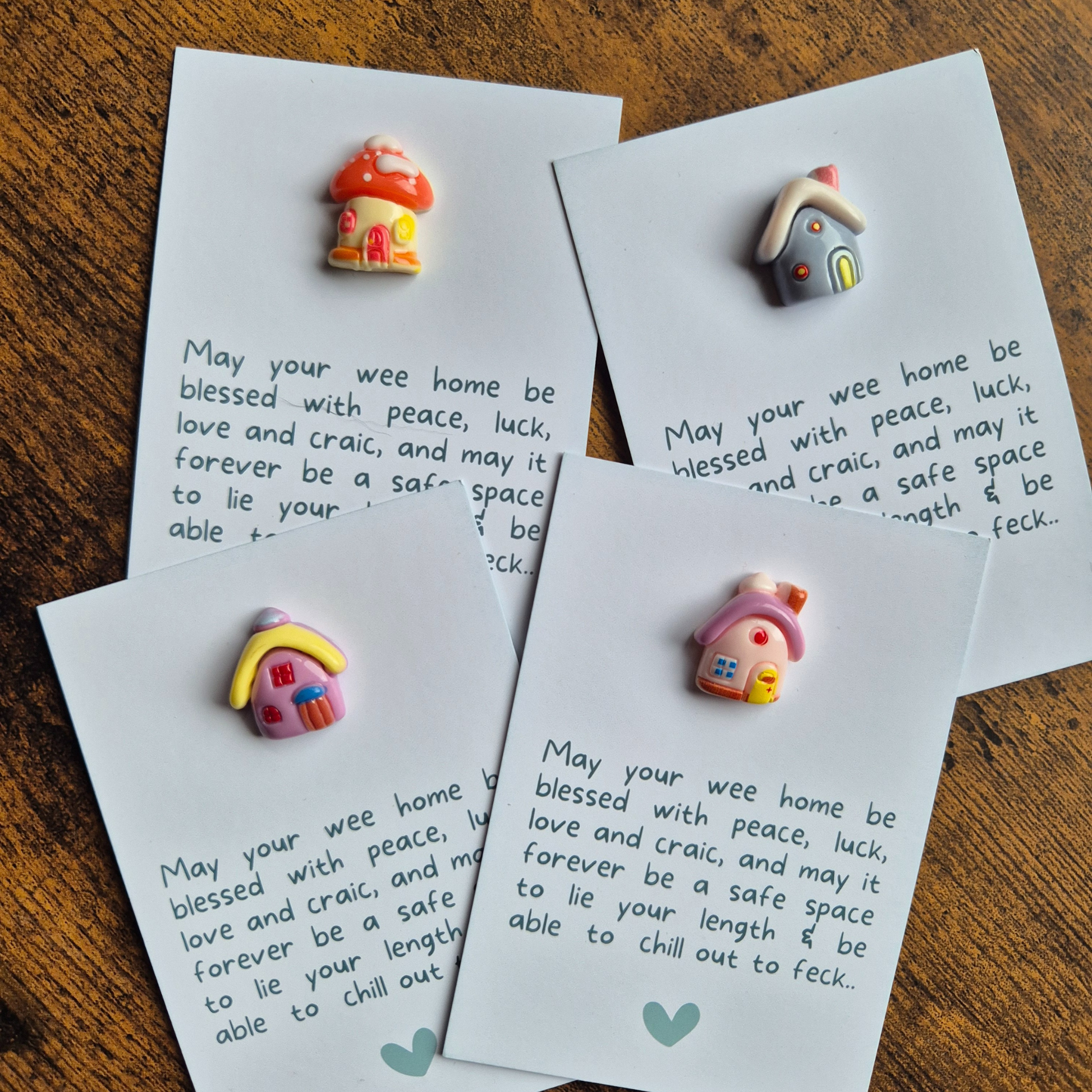 A lovely wee token card to gift someone for their new home. Note that the little resin homes vary in shape and colour and will be random selection.