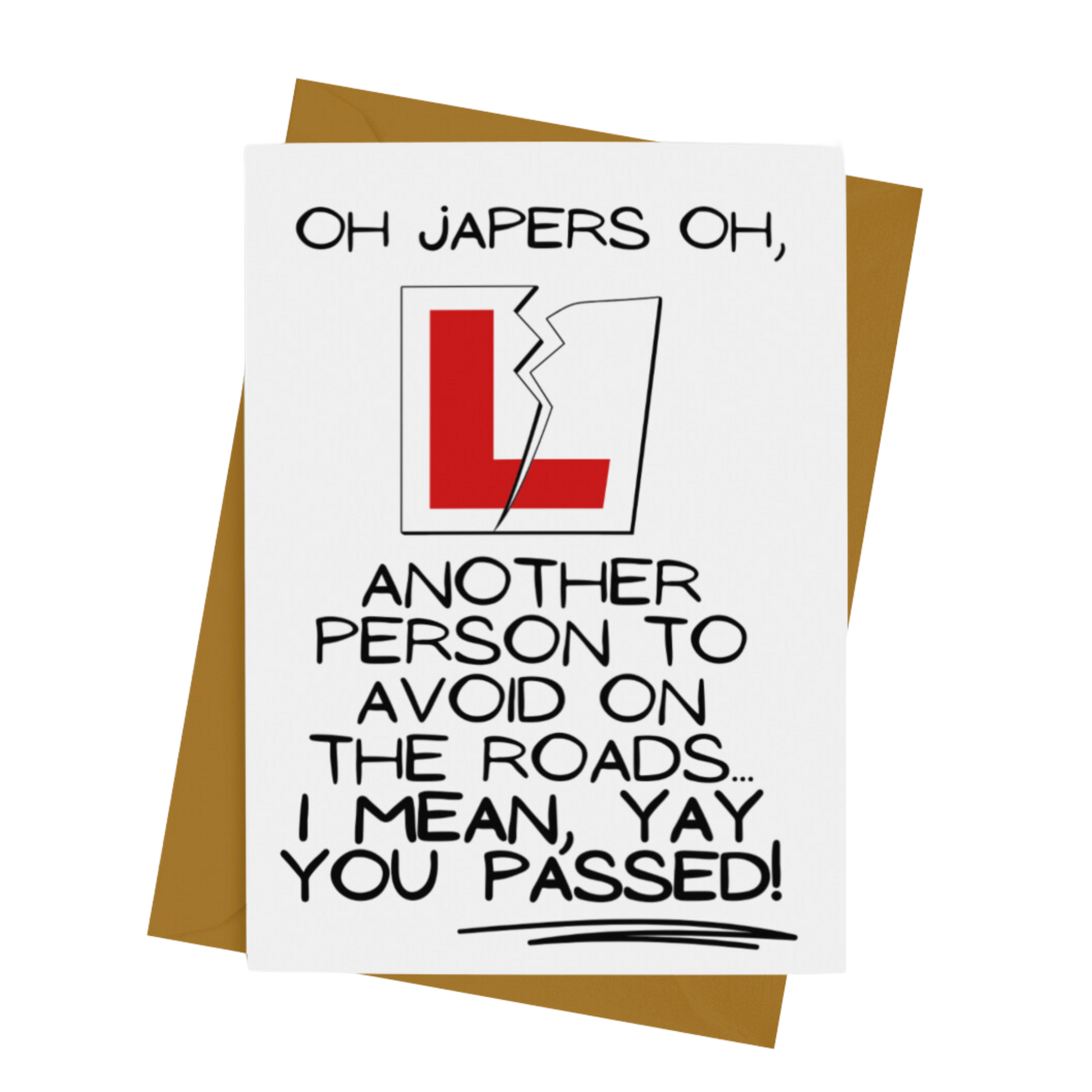 A funny wee card to acknowledge your sheer delight in someone passing their driving test....sort of...